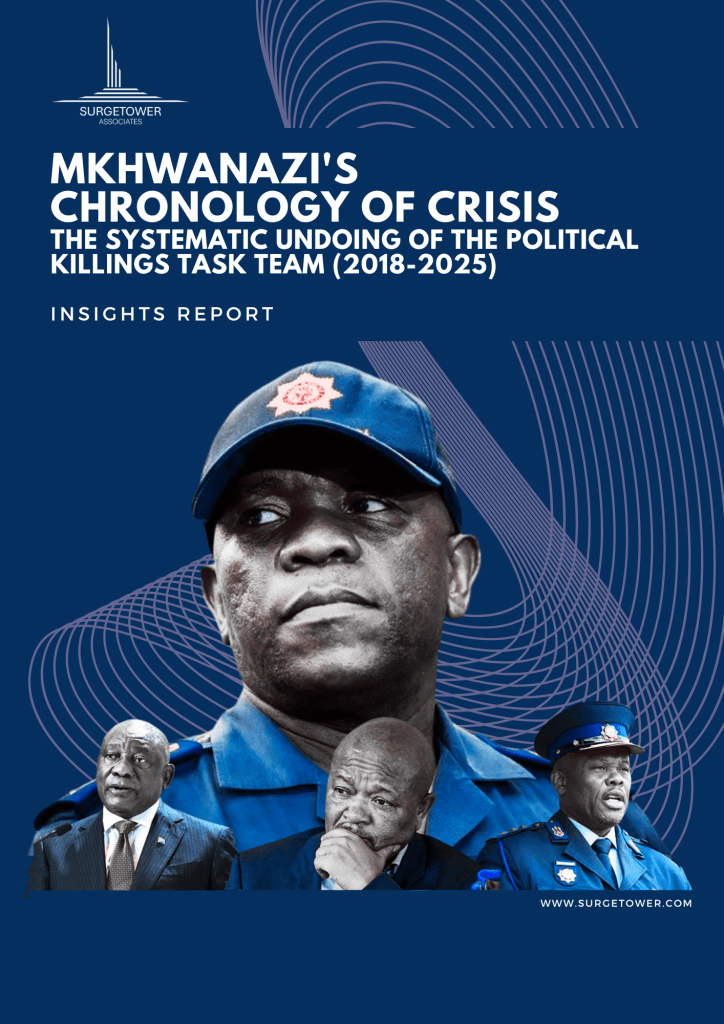 This Surgetower Associates report traces the systematic dismantling of South Africa’s Political Killings Task Team (2018–2025), exposing alleged collusion between criminals, police, and officials. Through a detailed timeline, it reveals how corruption infiltrated investigations, leading to the unit’s disbandment and stalled cases. A must-read for insights into institutional decay and accountability challenges. Download now for the full analysis.